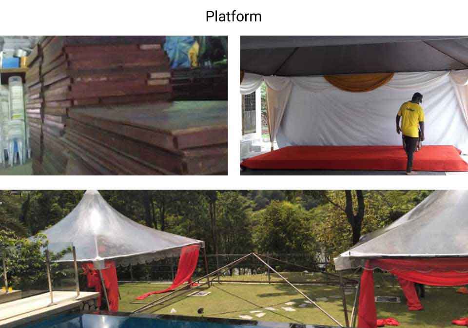 We provide a practical tent rental service and the add-ons that make it work, such as tables and chairs, lighting, fans or air coolers, portable toilets, and modular stage pieces. One crew handles delivery, setup, neat cabling, and clear-out when you are done. We handle indoor and outdoor programs, including birthdays, weddings, annual dinners, corporate events, and bazaars across KL, the Klang Valley, Selangor, and nearby areas..